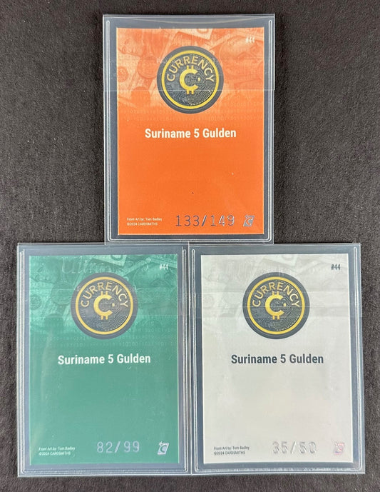 Cardsmiths Series 4 – Suriname 5 Gulden #44 – Emerald 82/99, Silver 35/50, Beryl 133/149 (3-Card Bundle)