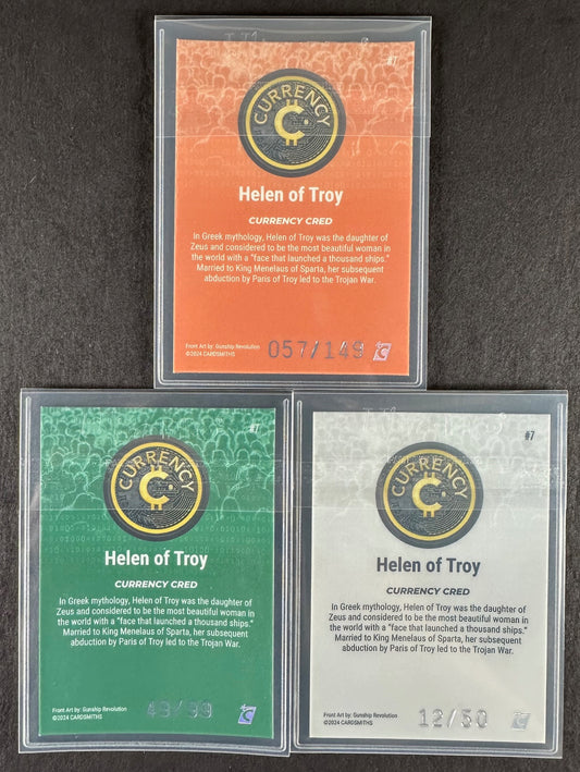 Cardsmiths Series 4 – Helen of Troy #7 – Emerald 49/99, Silver 12/50, Beryl 057/149 (3-Card Bundle)