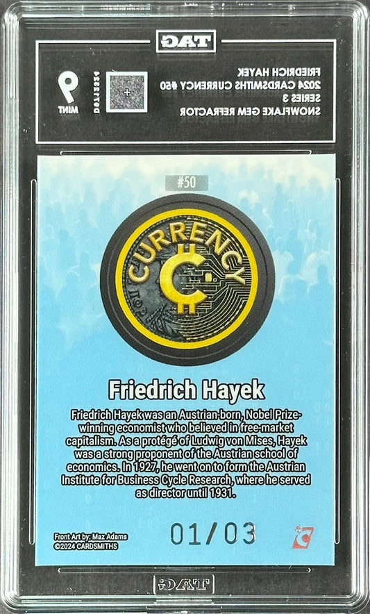 2024 Cardsmiths Currency Series 3 #50 Friedrich Hayek — Snowflake Gem Refractor (TAG Graded Mint 9)
