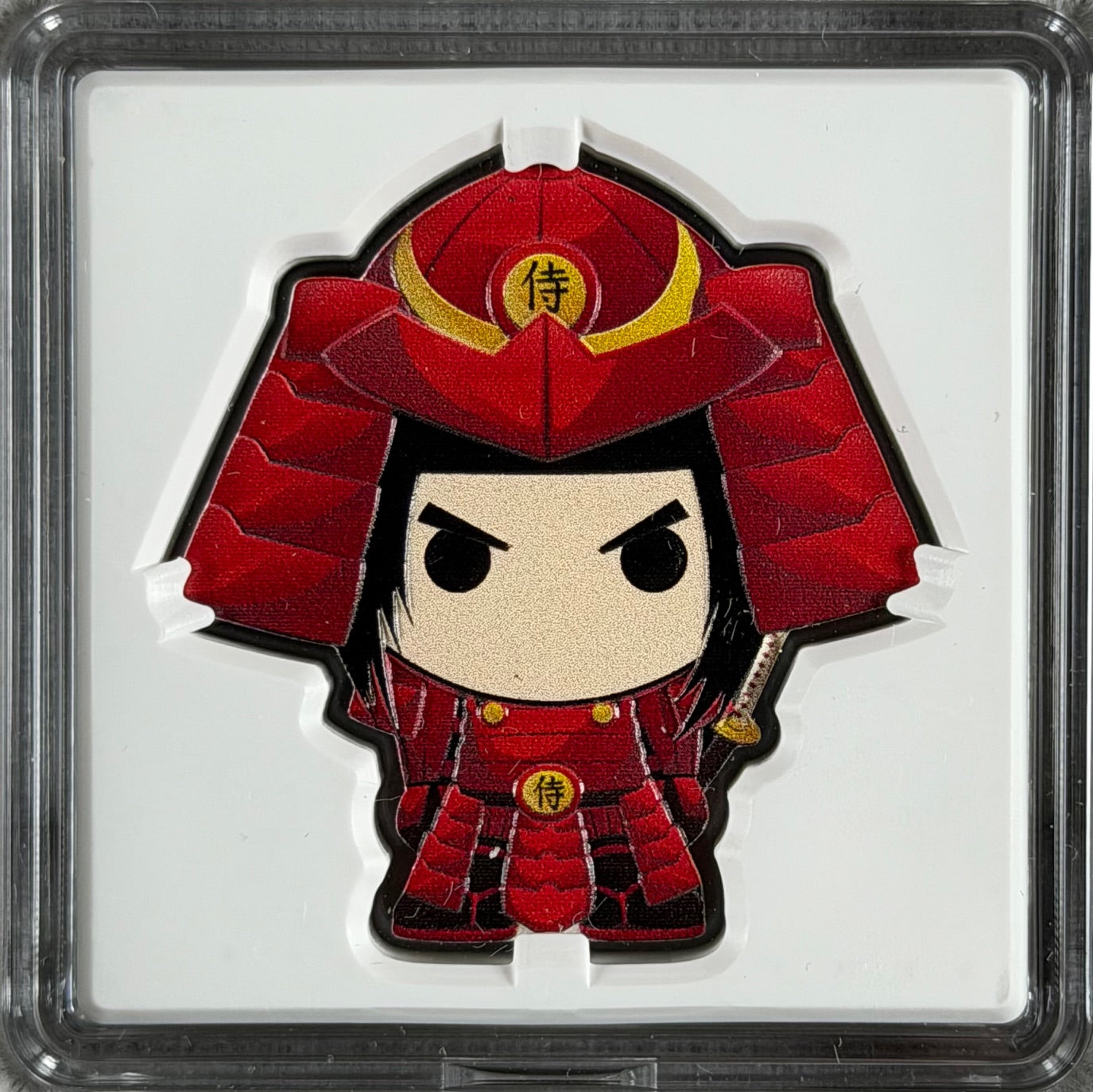 A unique combination of precious metal content and artistic presentation, this Samurai Chibi coin stands out as a distinctive modern silver issue.