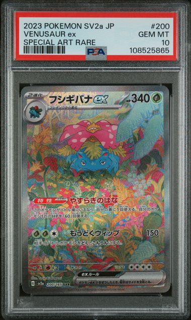 Enhance your Pokémon collection with the highly sought-after 2023 Japanese 151 cards. This PSA 10 graded Venasaur #200 features stunning special art, making it a rare and valuable addition to any trainer's deck. Quantities are limited, so get yours now!