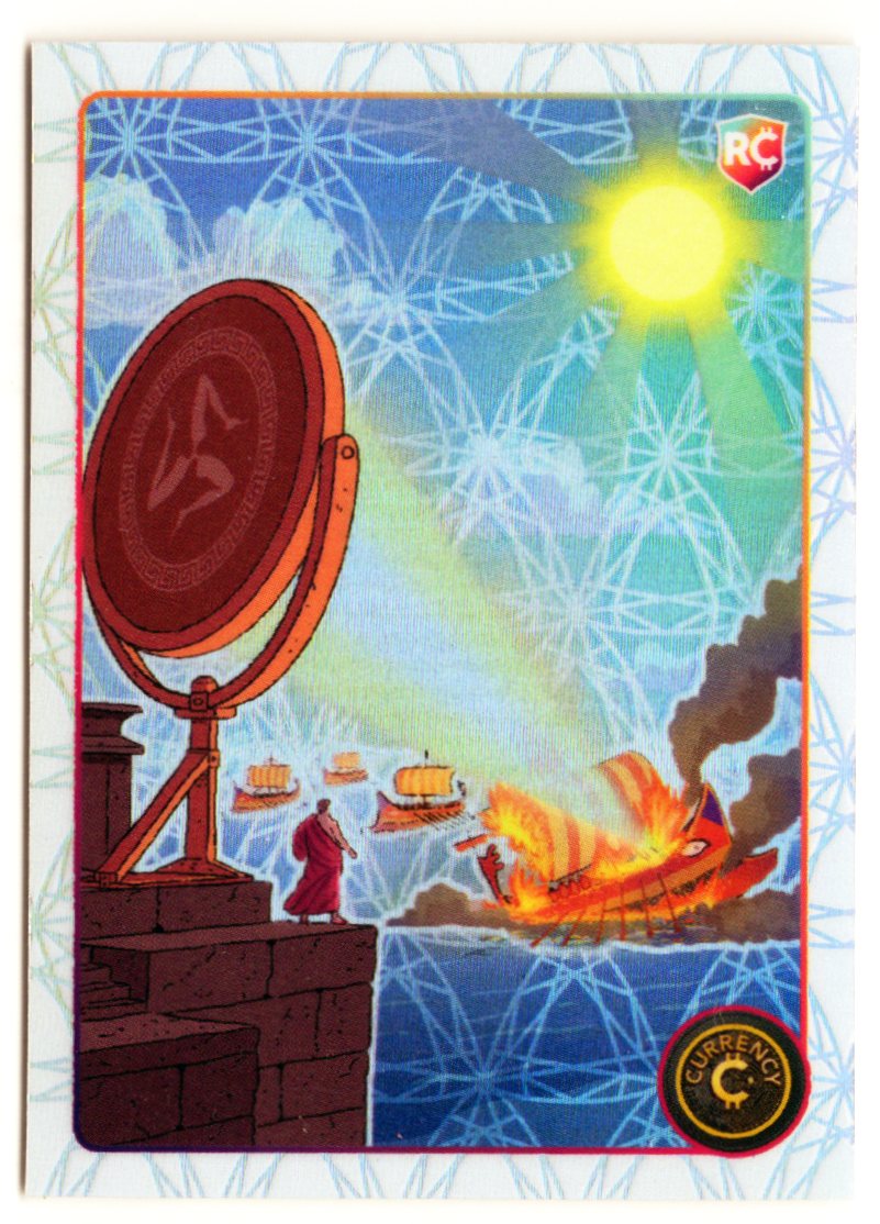 This Archimedes card is part of the 2025 Cardsmiths Series 5, honoring one of the greatest mathematical minds of ancient history. The artwork depicts a dramatic classical scene inspired by Archimedes’ legendary use of mirrors and geometry, symbolizing the power of mathematics, innovation, and scientific discovery. The Opal parallel adds a bright, luminous finish that enhances the historical weight and clarity of the design.