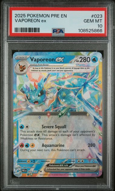 2025 Pokémon Prismatic Evolutions #023 Vaporeon ex - PSA 10