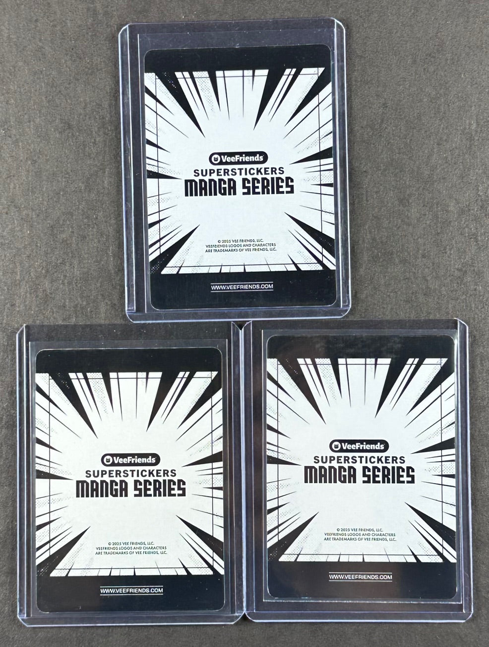 VeeFriends Super Stickers – Articulate Armadillo 3-Card Bundle – Purple Splash /55 + Orange Splash /199 + Manga Blue Burst /299