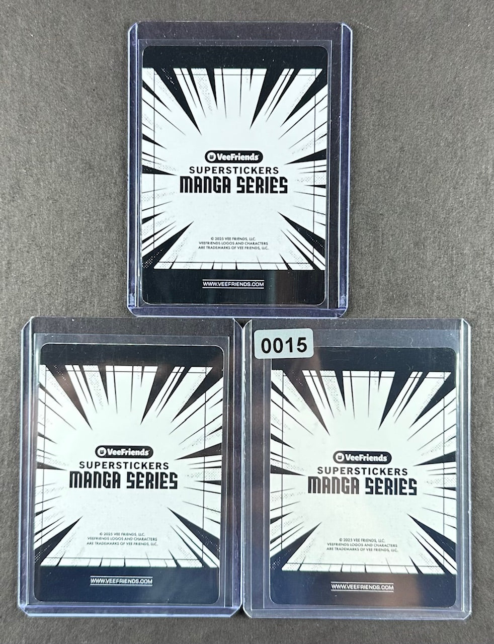 VeeFriends Super Stickers – Likable Leopard 3-Card Bundle – Green Splash /99 + Orange Splash /199 + Manga Clouds /399