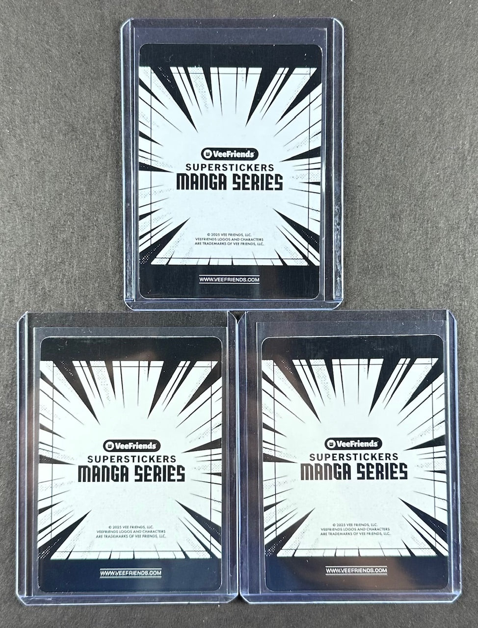 VeeFriends Super Stickers – Likable Leopard 3-Card Bundle – Green Splash /99 + Orange Splash /199 + Purple Splash /55