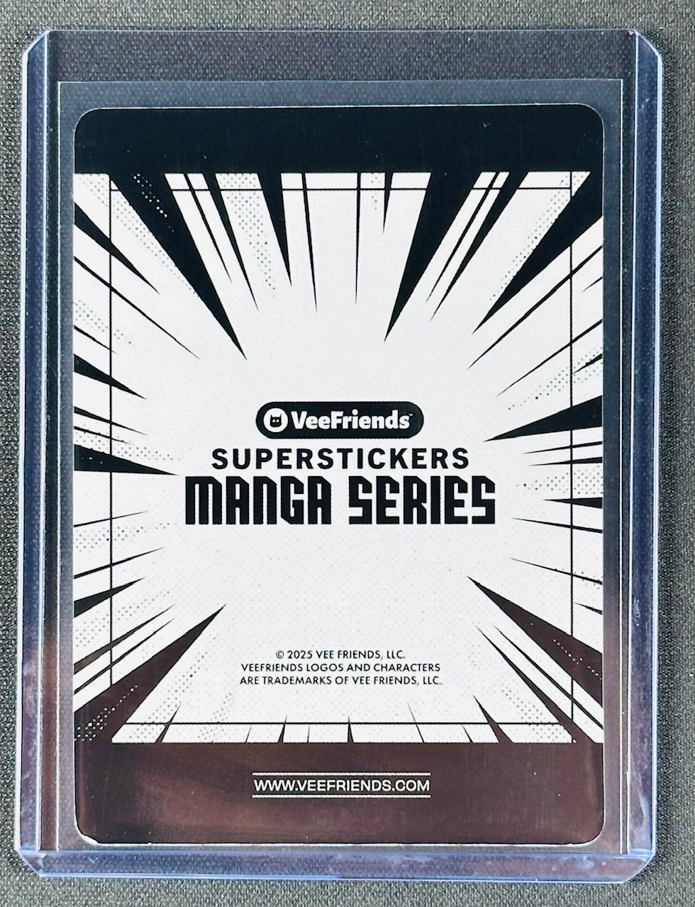 This Versatile Viking from the VeeFriends Super Stickers Manga Series features the ultra-limited Black Splash parallel, with only 10 copies produced. The bold black splash design and prismatic border give this card a striking, high-end look that stands out immediately in any Super Stickers or VeeFriends collection.