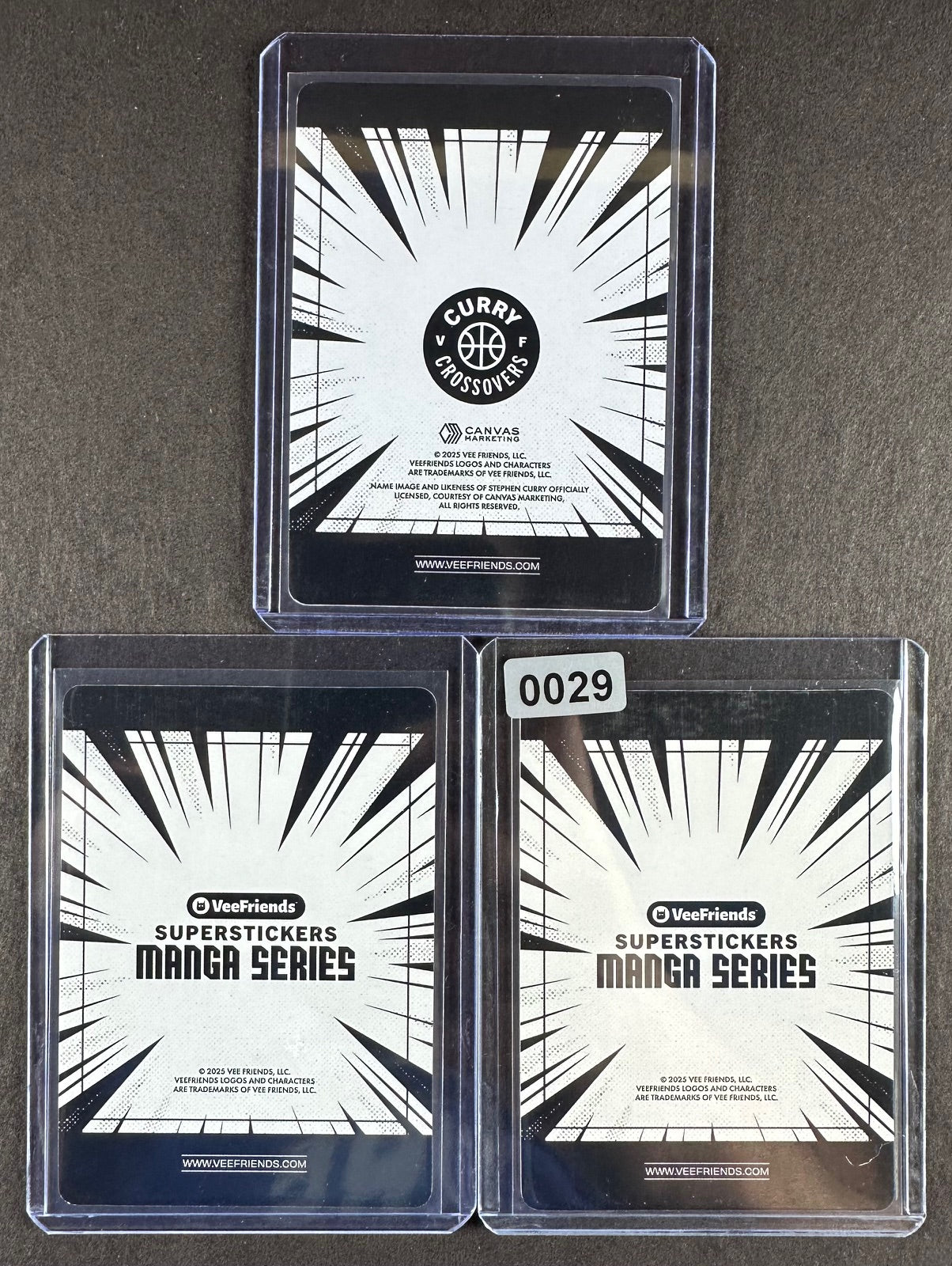VeeFriends Super Stickers – Rare Robot 3-Card Bundle – Purple Splash /55 + Manga Clouds /399 + Curry Crossover
